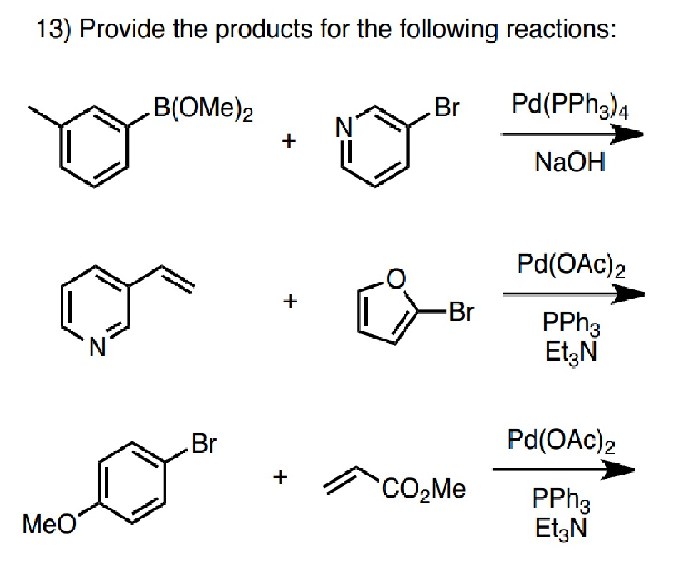 Heck Coupling from www.synarchive.com Oac pd(pph3)4 cat acoh ome. (15 points) show the products of the reactions shown below. Parantesis () or brackets . After cooling, ethynylbenzene (1.3 equiv.), pph3. Pd(ii), pd(0) salts, p(aryl)3 / as(aryl)3 amine, solvent, temp. (a) i + h h pd(oac) 2 , pph 3 et 3 n, thf (b) f 3 c b o o + n br cl pd. Ford,b christoph schotes,c rachel r. Performing the reaction at 110 °c increased (0.04 equiv.) in a mixture of dme/etoh/h2o (3/1/1) under microwave irradiation for 2 h at 60 °c.